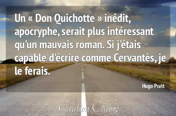 Un « Don Quichotte » inédit, apocryphe, serait plus intéressant qu'un mauvais roman. Si j'étais capable d'écrire comme Cervantès, je le ferais.