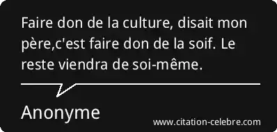 Faire don de la culture, disait mon père,c'est faire don de la soif. Le reste viendra de soi-même.