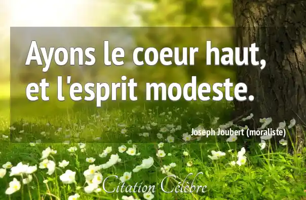 Citation Joseph Joubert (moraliste) coeur : Ayons le coeur haut, et l'esprit modeste....