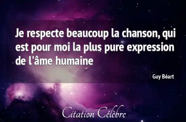 Je respecte beaucoup la chanson, qui est pour moi la plus pure expression de l'âme humaine
