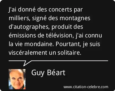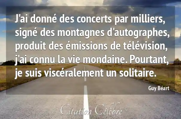J'ai donné des concerts par milliers, signé des montagnes d'autographes, produit des émissions de télévision, j'ai connu la vie mondaine. Pourtant, je suis viscéralement un solitaire.