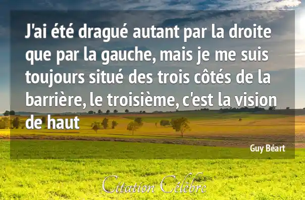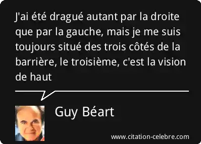 J'ai été dragué autant par la droite que par la gauche, mais je me suis toujours situé des trois côtés de la barrière, le troisième, c'est la vision de haut
