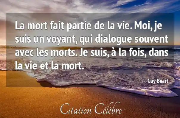 La mort fait partie de la vie. Moi, je suis un voyant, qui dialogue souvent avec les morts. Je suis, à la fois, dans la vie et la mort.