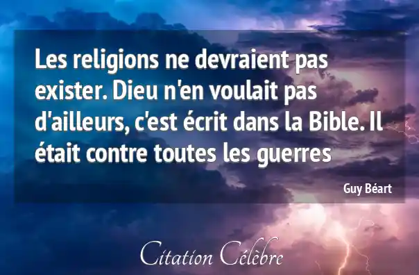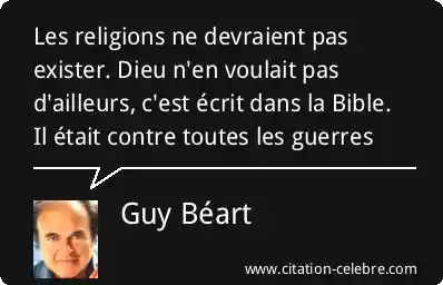 Les religions ne devraient pas exister. Dieu n'en voulait pas d'ailleurs, c'est écrit dans la Bible. Il était contre toutes les guerres