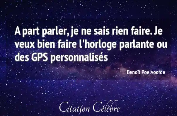 A part parler, je ne sais rien faire. Je veux bien faire l'horloge parlante ou des GPS personnalisés