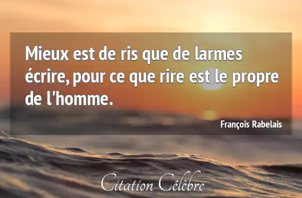Mieux est de ris que de larmes écrire, pour ce que rire est le propre de l'homme.