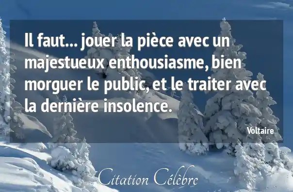 Il faut... jouer la pièce avec un majestueux enthousiasme, bien morguer le public, et le traiter avec la dernière insolence.