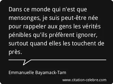 Dans ce monde qui n'est que mensonges, je suis peut-être née pour rappeler aux gens les vérités pénibles qu'ils préfèrent ignorer, surtout quand elles les touchent de près.