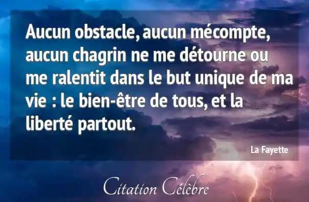 Aucun obstacle, aucun mécompte, aucun chagrin ne me détourne ou me ralentit dans le but unique de ma vie : le bien-être de tous, et la liberté partout.
