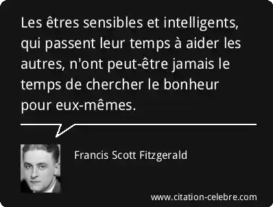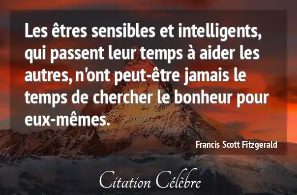 Les êtres sensibles et intelligents, qui passent leur temps à aider les autres, n'ont peut-être jamais le temps de chercher le bonheur pour eux-mêmes.