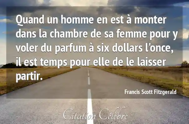 Quand un homme en est à monter dans la chambre de sa femme pour y voler du parfum à six dollars l'once, il est temps pour elle de le laisser partir.
