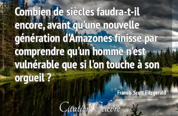 Combien de siècles faudra-t-il encore, avant qu'une nouvelle génération d'Amazones finisse par comprendre qu'un homme n'est vulnérable que si l'on touche à son orgueil ?