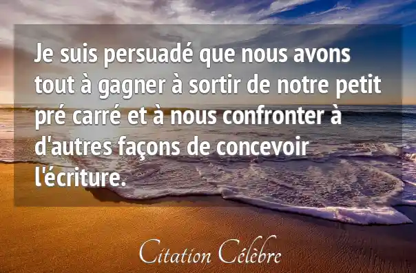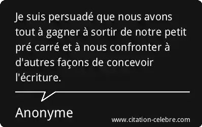 Je suis persuadé que nous avons tout à gagner à sortir de notre petit pré carré et à nous confronter à d'autres façons de concevoir l'écriture.