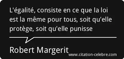 L'égalité, consiste en ce que la loi est la même pour tous, soit qu'elle protège, soit qu'elle punisse