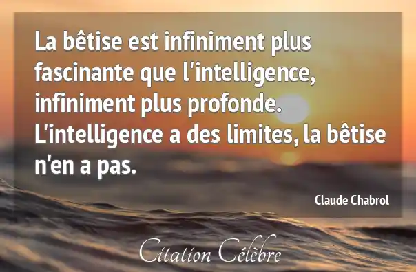 La bêtise est infiniment plus fascinante que l'intelligence, infiniment plus profonde. L'intelligence a des limites, la bêtise n'en a pas.