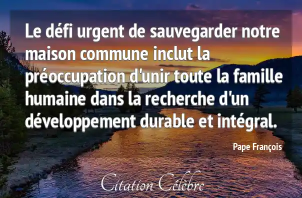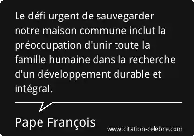 Le défi urgent de sauvegarder notre maison commune inclut la préoccupation d'unir toute la famille humaine dans la recherche d'un développement durable et intégral.