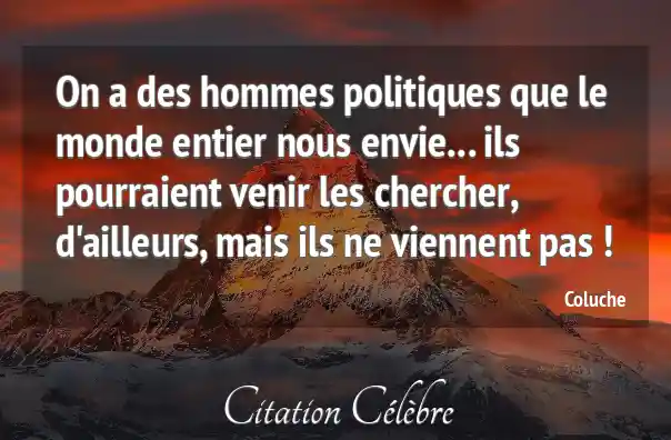 On a des hommes politiques que le monde entier nous envie... ils pourraient venir les chercher, d'ailleurs, mais ils ne viennent pas !