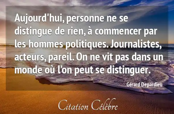 Aujourd'hui, personne ne se distingue de rien, à commencer par les hommes politiques. Journalistes, acteurs, pareil. On ne vit pas dans un monde où l'on peut se distinguer.