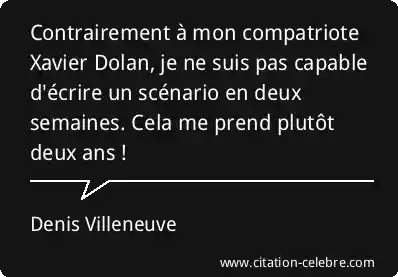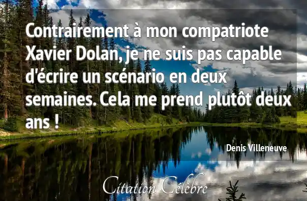 Contrairement à mon compatriote Xavier Dolan, je ne suis pas capable d'écrire un scénario en deux semaines. Cela me prend plutôt deux ans !