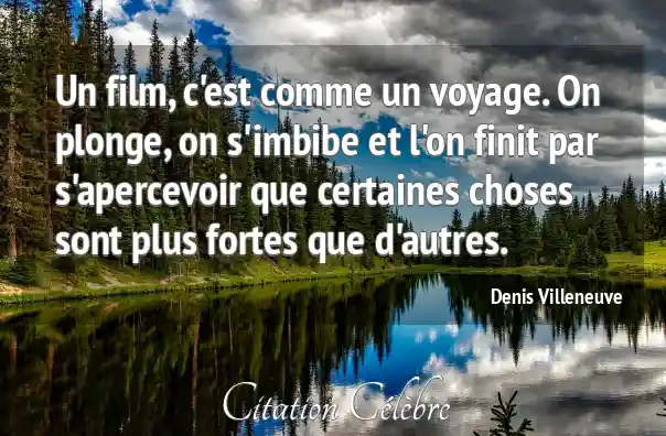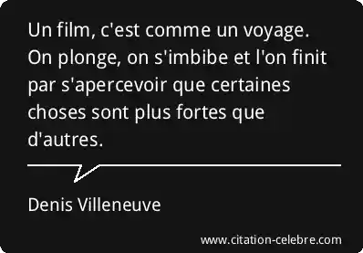 Un film, c'est comme un voyage. On plonge, on s'imbibe et l'on finit par s'apercevoir que certaines choses sont plus fortes que d'autres.