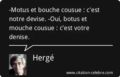 -Motus et bouche cousue : c'est notre devise. -Oui, botus et mouche cousue : c'est votre denise.