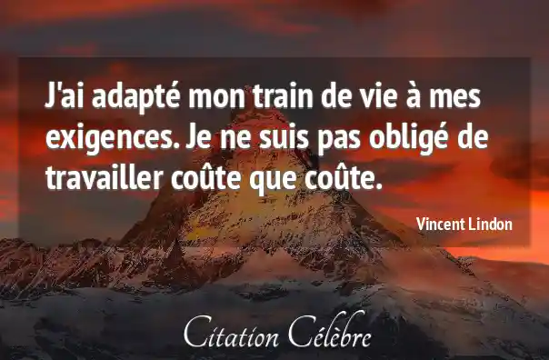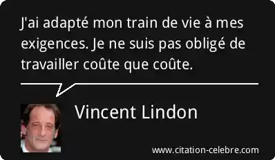 J'ai adapté mon train de vie à mes exigences. Je ne suis pas obligé de travailler coûte que coûte.