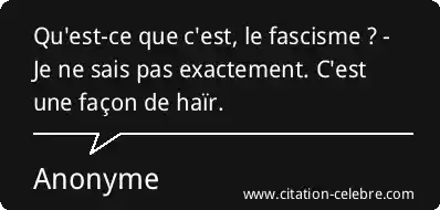 Qu'est-ce que c'est, le fascisme ? - Je ne sais pas exactement. C'est une façon de haïr.