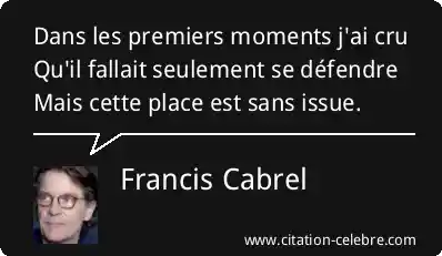 Dans les premiers moments j'ai cru Qu'il fallait seulement se défendre Mais cette place est sans issue.