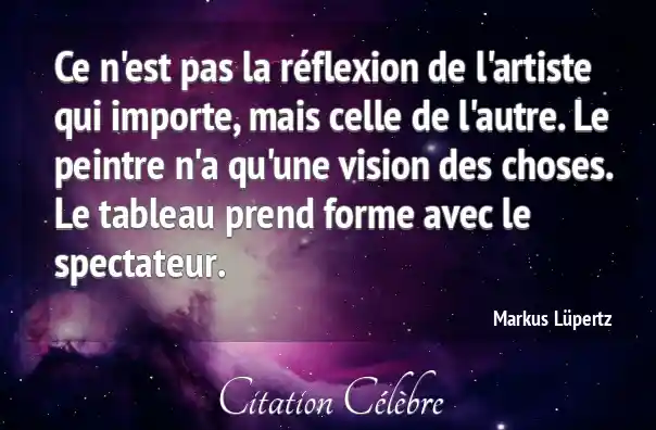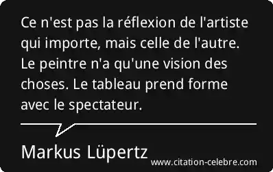 Ce n'est pas la réflexion de l'artiste qui importe, mais celle de l'autre. Le peintre n'a qu'une vision des choses. Le tableau prend forme avec le spectateur.