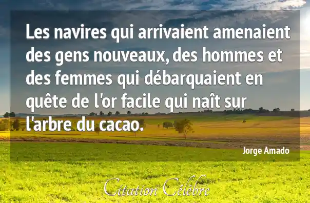 Les navires qui arrivaient amenaient des gens nouveaux, des hommes et des femmes qui débarquaient en quête de l'or facile qui naît sur l'arbre du cacao.