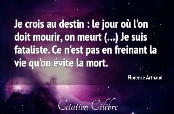 Je crois au destin : le jour où l'on doit mourir, on meurt (...) Je suis fataliste. Ce n'est pas en freinant la vie qu'on évite la mort.
