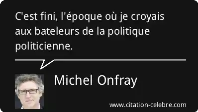 Citation Michel Onfray politique : C'est fini, l'époque où je croyais aux bateleurs de la...