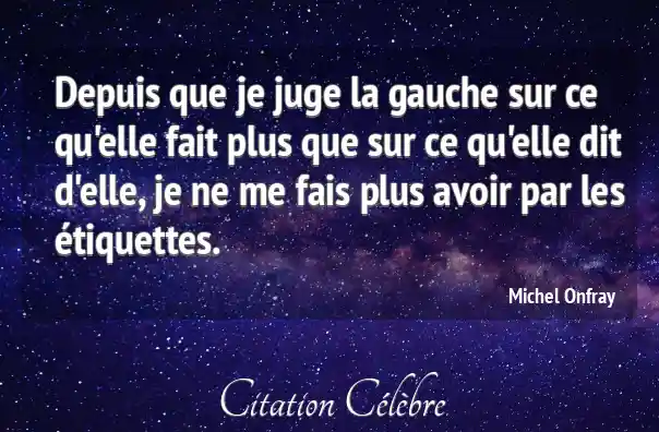 Depuis que je juge la gauche sur ce qu'elle fait plus que sur ce qu'elle dit d'elle, je ne me fais plus avoir par les étiquettes.