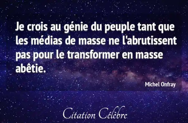 Je crois au génie du peuple tant que les médias de masse ne l'abrutissent pas pour le transformer en masse abêtie.