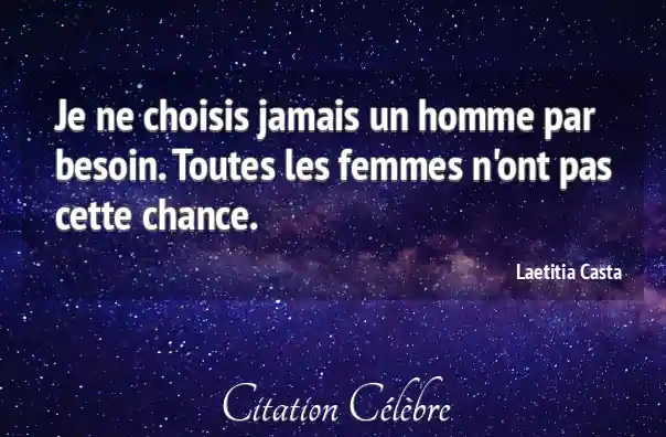 Je ne choisis jamais un homme par besoin. Toutes les femmes n'ont pas cette chance.