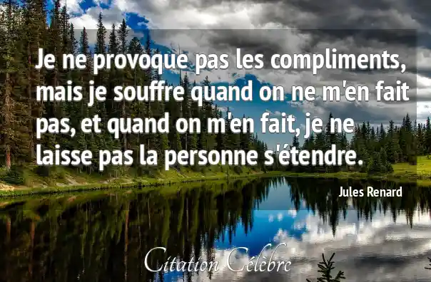 Je ne provoque pas les compliments, mais je souffre quand on ne m'en fait pas, et quand on m'en fait, je ne laisse pas la personne s'étendre.