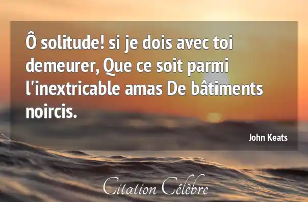Ô solitude! si je dois avec toi demeurer, Que ce soit parmi l'inextricable amas De bâtiments noircis.