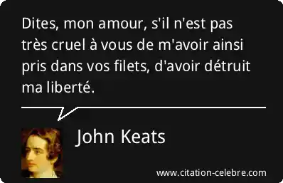 Dites, mon amour, s'il n'est pas très cruel à vous de m'avoir ainsi pris dans vos filets, d'avoir détruit ma liberté.