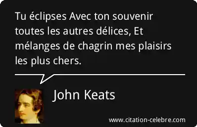 Tu éclipses Avec ton souvenir toutes les autres délices, Et mélanges de chagrin mes plaisirs les plus chers.