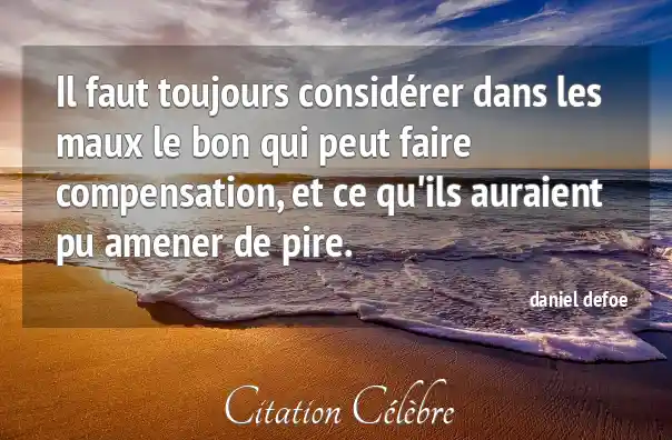 Il faut toujours considérer dans les maux le bon qui peut faire compensation, et ce qu'ils auraient pu amener de pire.