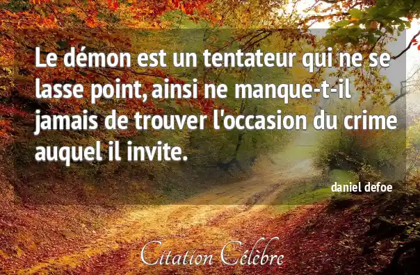 Le démon est un tentateur qui ne se lasse point, ainsi ne manque-t-il jamais de trouver l'occasion du crime auquel il invite.