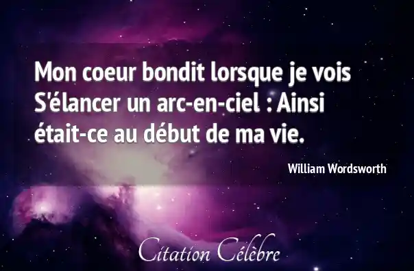 Mon coeur bondit lorsque je vois S'élancer un arc-en-ciel : Ainsi était-ce au début de ma vie.