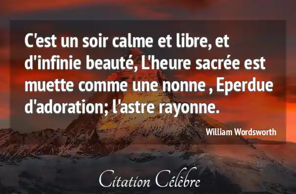 C'est un soir calme et libre, et d'infinie beauté, L'heure sacrée est muette comme une nonne , Eperdue d'adoration; l'astre rayonne.