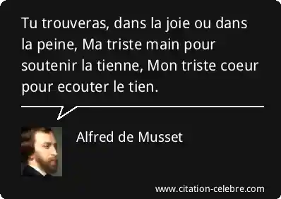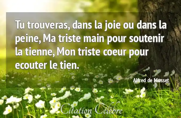 Tu trouveras, dans la joie ou dans la peine, Ma triste main pour soutenir la tienne, Mon triste coeur pour ecouter le tien.