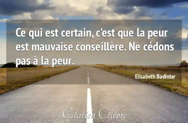 Ce qui est certain, c'est que la peur est mauvaise conseillère. Ne cédons pas à la peur.