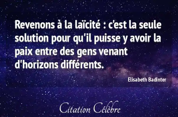 Revenons à la laïcité : c'est la seule solution pour qu'il puisse y avoir la paix entre des gens venant d'horizons différents.