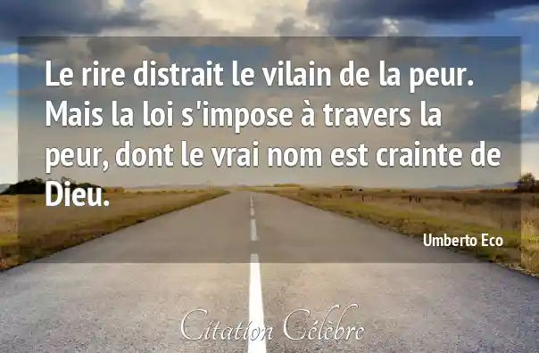 Le rire distrait le vilain de la peur. Mais la loi s'impose à travers la peur, dont le vrai nom est crainte de Dieu.