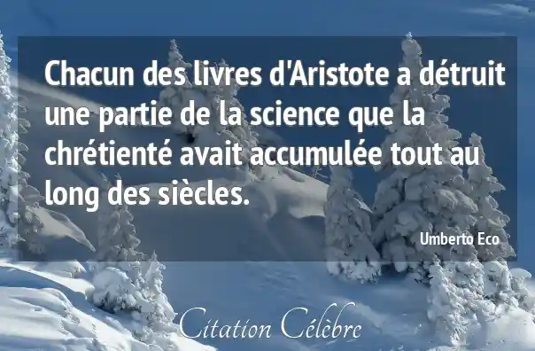 Chacun des livres d'Aristote a détruit une partie de la science que la chrétienté avait accumulée tout au long des siècles.
