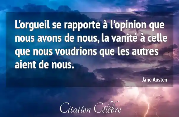 L'orgueil se rapporte à l'opinion que nous avons de nous, la vanité à celle que nous voudrions que les autres aient de nous.