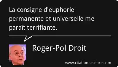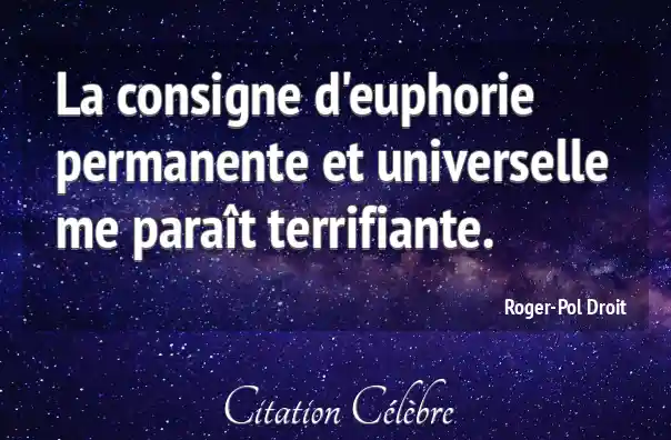 Citation Roger-Pol Droit universelle : La consigne d'euphorie permanente et universelle me paraît terrifiante....